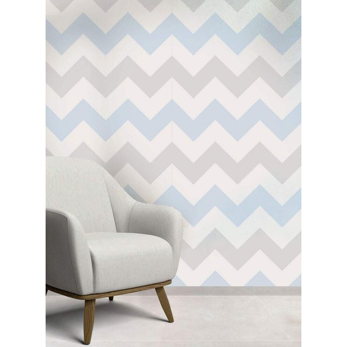 Papel de Parede Chevron Mod - 130 Azul Claro e Cinza-60x300cm
