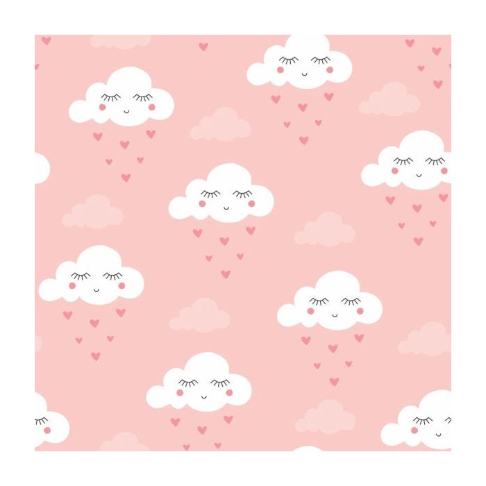 Papel de Parede Chuva de Amor Nuvem Rosa Menina Bebe 3m