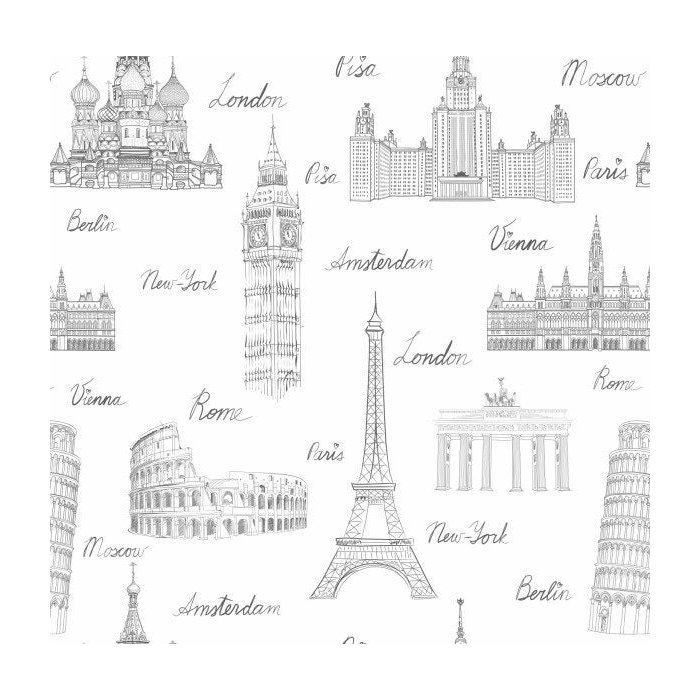 Papel de Parede Cidades Menina Paris Londres Preto 3m