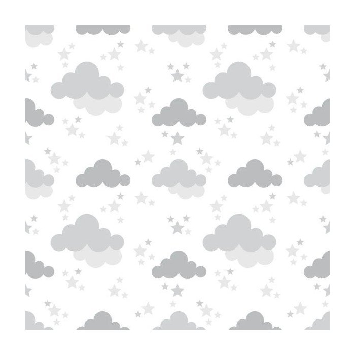 Papel de Parede Cinza Nuvem Nuvens Estrela Quarto Teen 3m