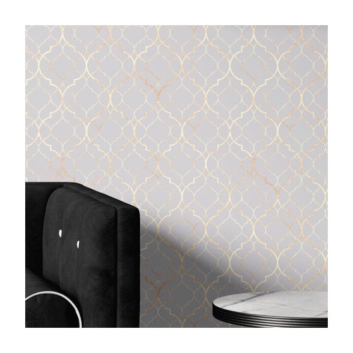 Papel de parede clássico Marrocos em tons de Cinza e Gold Para Quartos e Sala