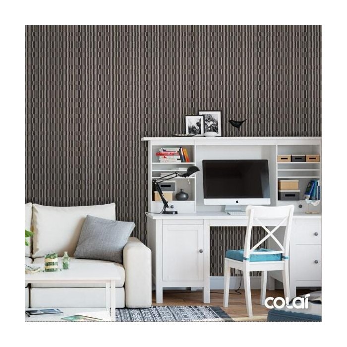 Papel De Parede Colaí Adesivo Lavável Linhas Marrom 6M