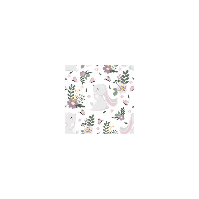 Papel de Parede com coelhinho da páscoa e flores em um fundo branco - ilustração, eps