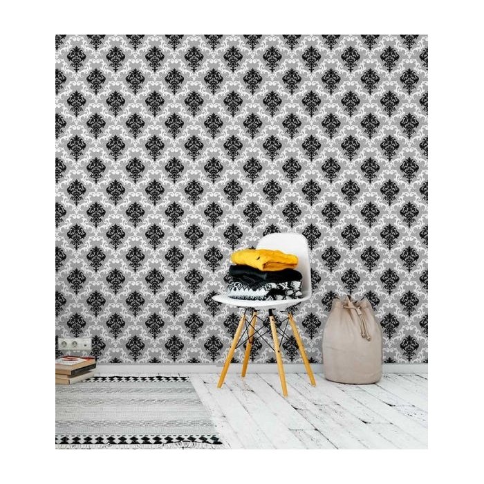 Papel de parede com fundo cinza e detalhes em branco e preto cinza