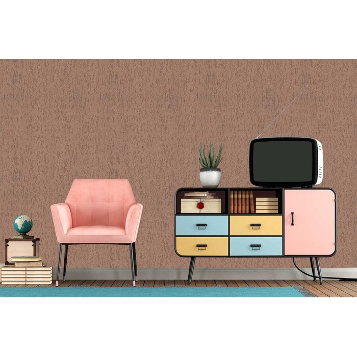 Em tons mais nude, este modelo de papel de parede tem efeito de textura grafiato marrom. Rustico, o papel de parede adesivo é confeccionado em filme de PVC material lavável, além disso, também é adesivo.