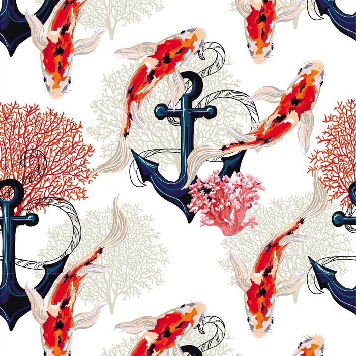 Papel de Parede Decorativo Temático Âncoras e Carpas 2,5m