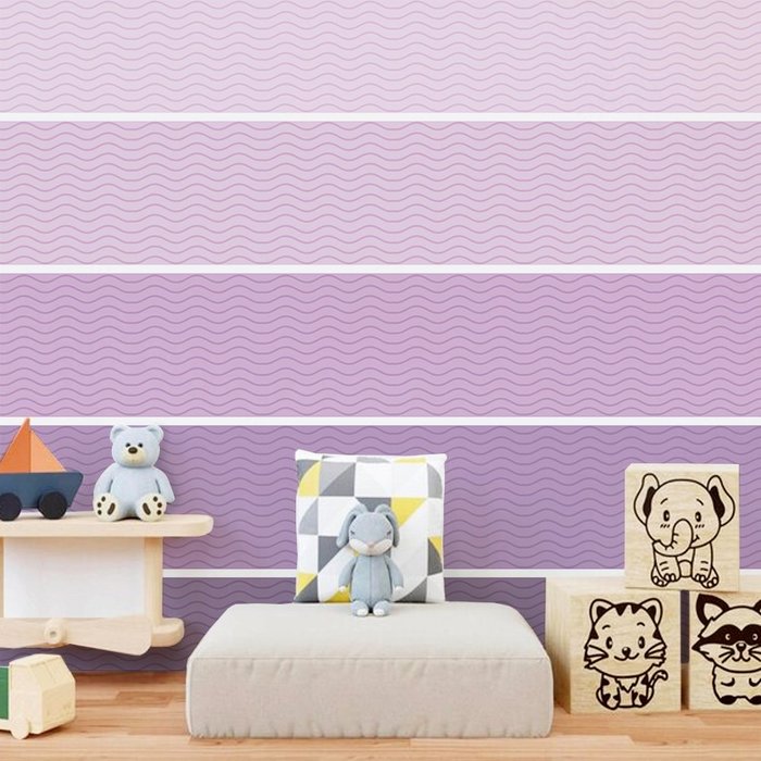 Usar Papel de Parede Adesivo Degrade Ondulado no cantinho da criançada além de alegrar o ambiente, é mais fácil para aplicar, prático de limpar e simples de trocar. É perfeito para quem deseja fazer uma brinquedoteca ou montar um espaço muito divertido para que os pequenos possam aprender brincando!
