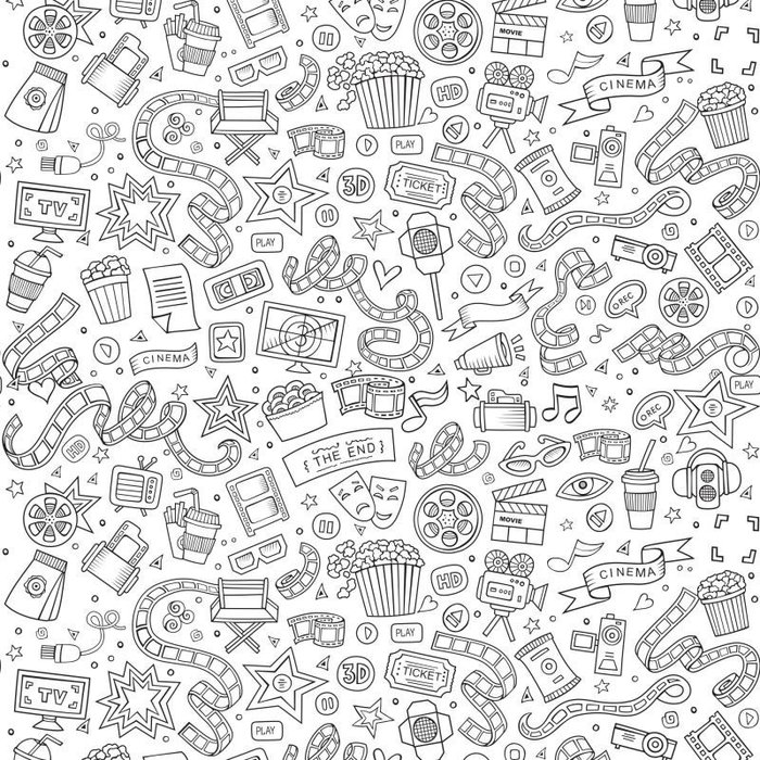 Papel de Parede Desenho para Colorir Cinema 2,70x0,57m preto e branco