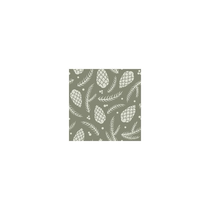 Papel de Parede design verde salvo. galhos de pinheiros, pinhas e bagas. design botânico com tons te