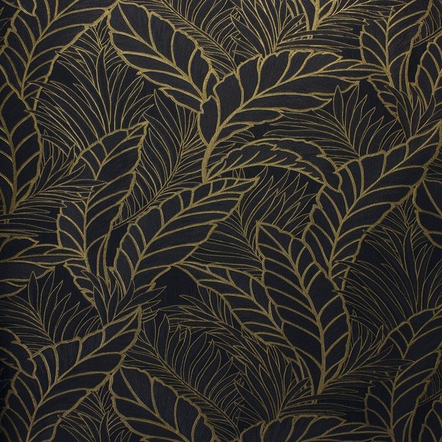 Detalhes do Papel de Parede Estampado Folhagem Preto e Dourado: