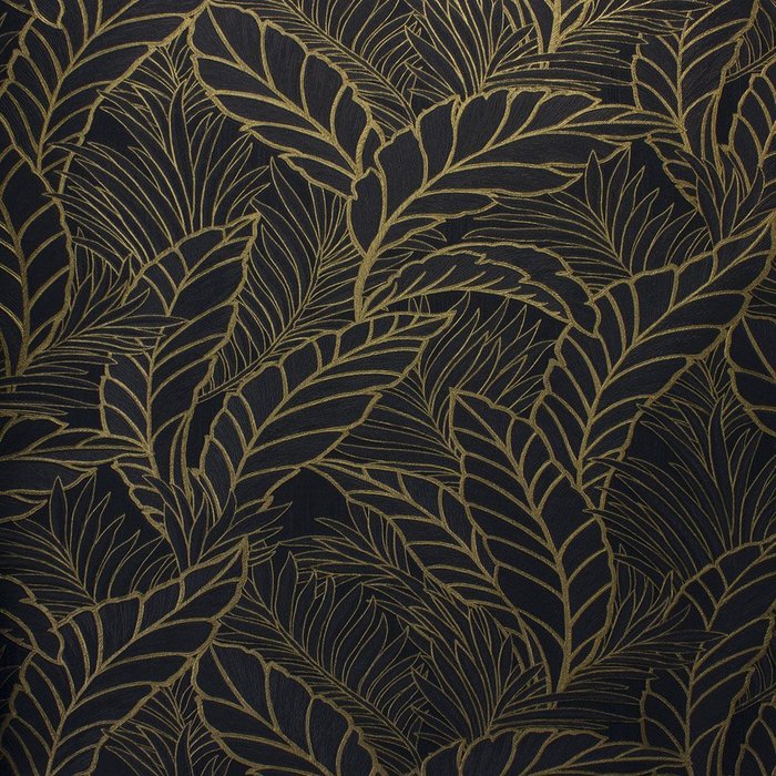 Detalhes do Papel de Parede Estampado Folhagem Preto e Dourado: