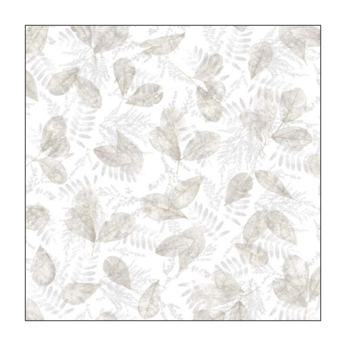 Papel De Parede Evergreen 7300 Vinílico Floral Folhas Bege Cinza