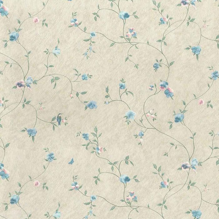 Papel de Parede Floral Azul e Bege - Rolo: 10m X 0,53m - Fragrant Roses - 811075