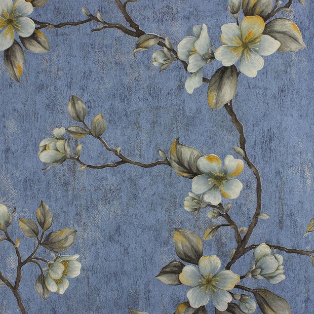 Papel de Parede Floral Azul com Cola para Aplicação