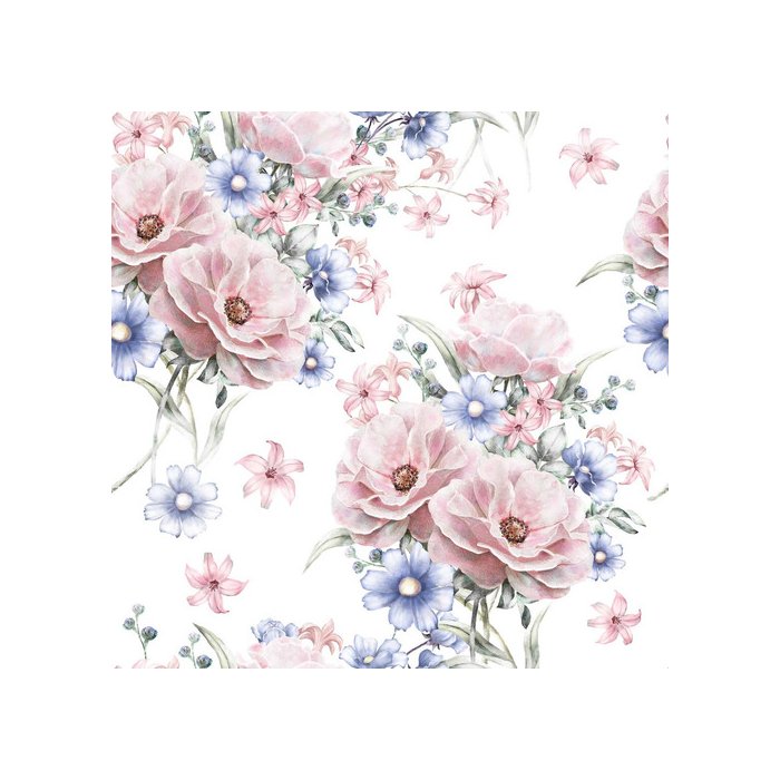 Papel de Parede Floral Buquê Azul Claro e Rosê - 2,50x0,50m