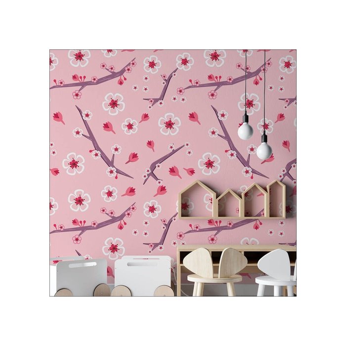 Papel De Parede Flores E Ramos De Cerejeira Rosa Rosa
