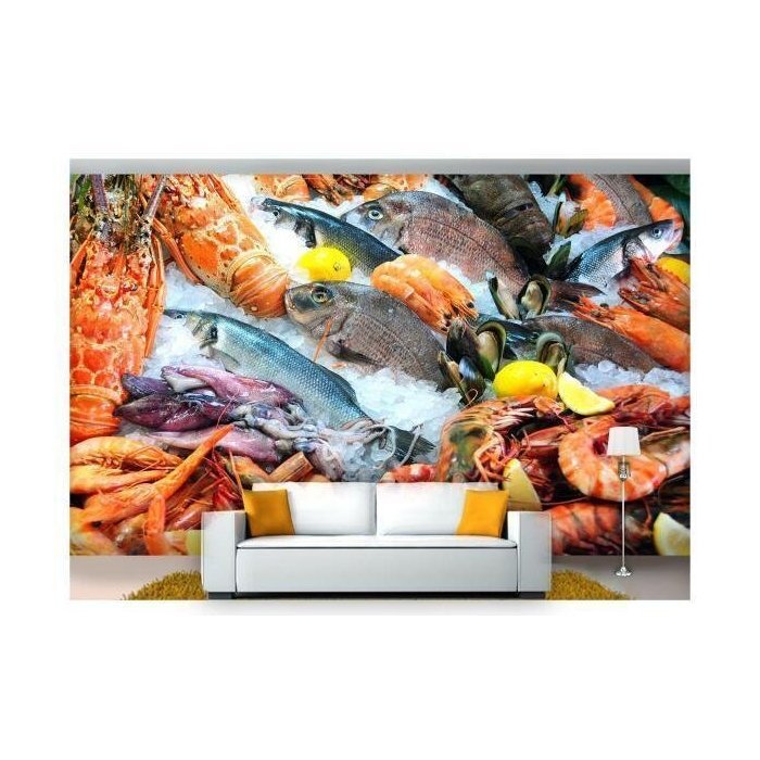 Papel De Parede Frutos Do Mar Camarão 3D Al197