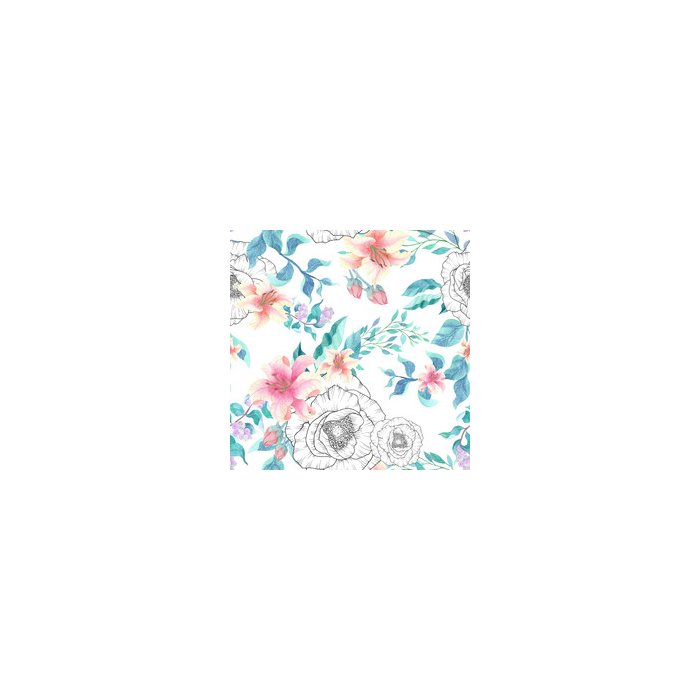 Papel de Parede fundo aquarela mistura flor floral colorida e folhas com arte de linha usada para te