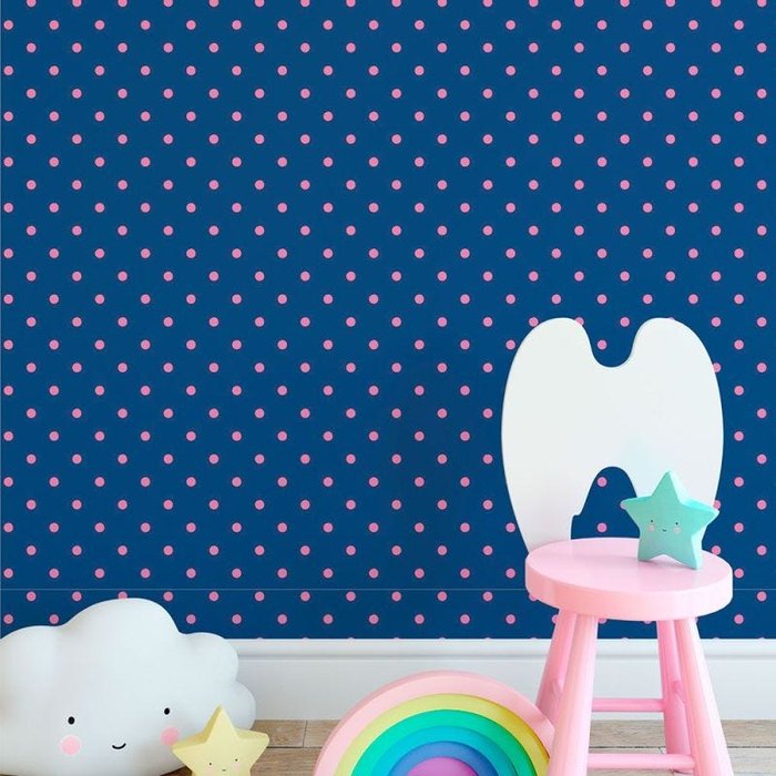 Papel de Parede Fundo Azul e Bolinha Rosa