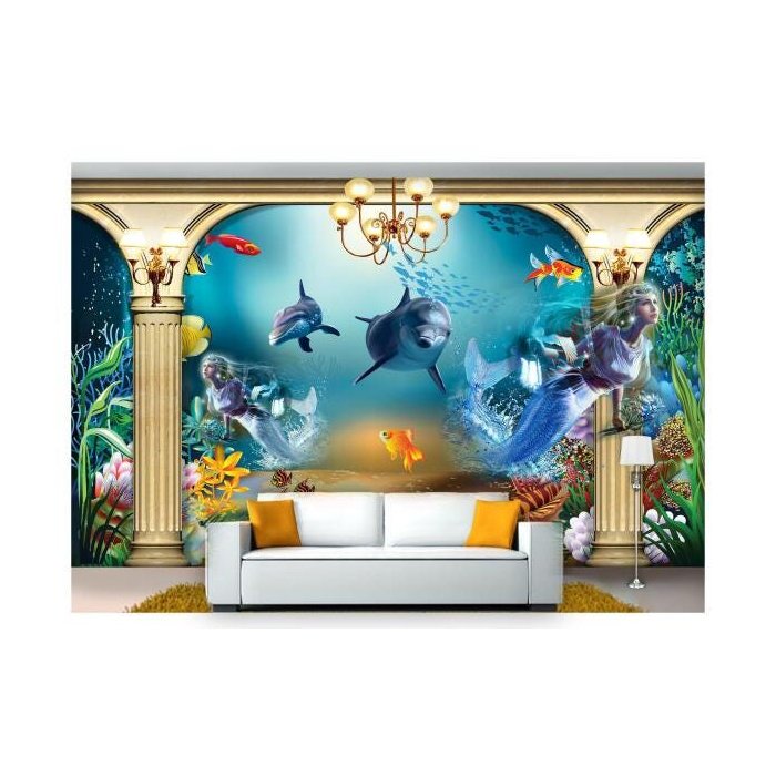 O Papel De Parede Fundo D Mar Golfinhos Sereia 3D vai transformar a sua decoração de forma prática, limpa e econômica. Com efeito 3D, esse modelo impactante passa a sensação de profundidade ao ambiente. O papel adesivo é de fácil aplicação, principlamente em comparação aos materiais que imitam texturas ou que necessitam de mão de obra especializada.