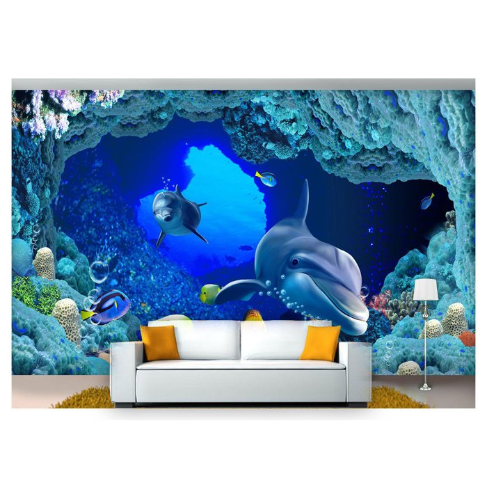 Papel De Parede Fundo Do Mar Golfinhos Mar 3D 7,50M² At62