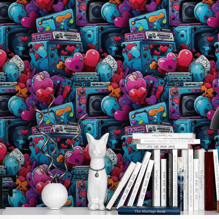 Papel de Parede Gamer 3d Arte Pintura Coraçao Rosa Estilo Grafite Geek Cor Viva Lavavel Sala 18m