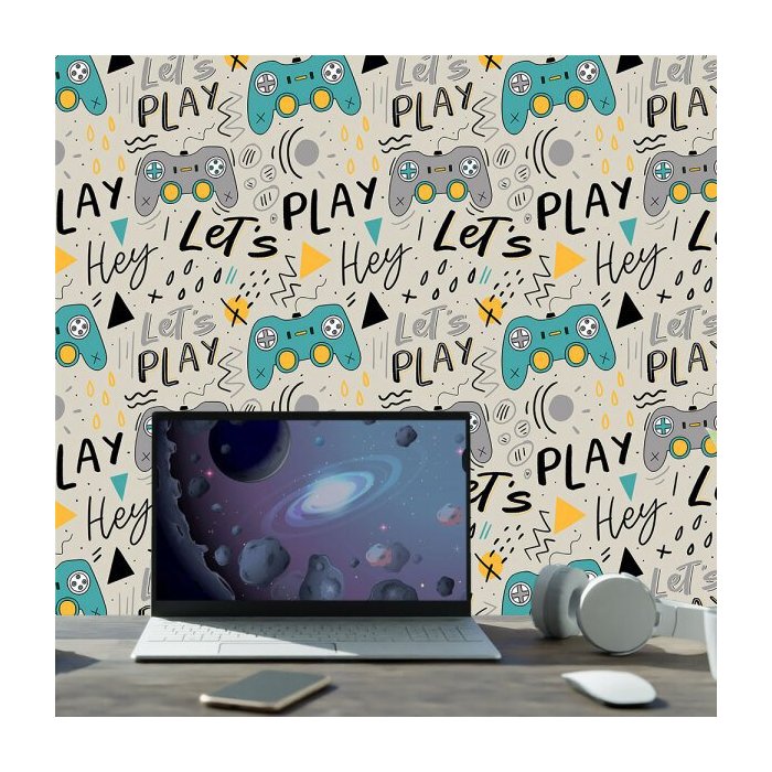 Papel De Parede Gamer Controles Bora Jogar Fundo Gelo 3,50m