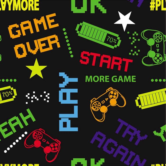 Papel de Parede Gamer Palavras e Itens Coloridos - 1,5x0,5m Coloridos