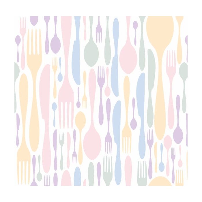 Papel de Parede Garfo Faca Colher Colorido Cozinha 3m