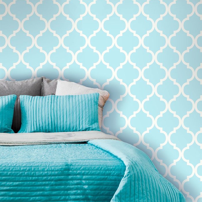 Papel de Parede Geométrico Azul Claro- Com Cola Para Aplicação