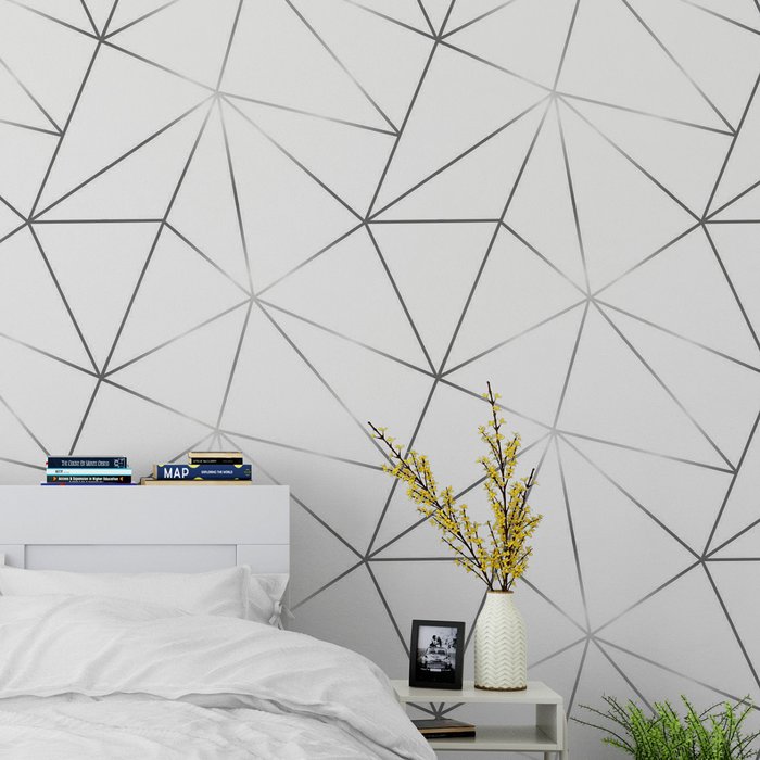 Papel De Parede Geométrico Branco Silver Prata Auto Colante 3m