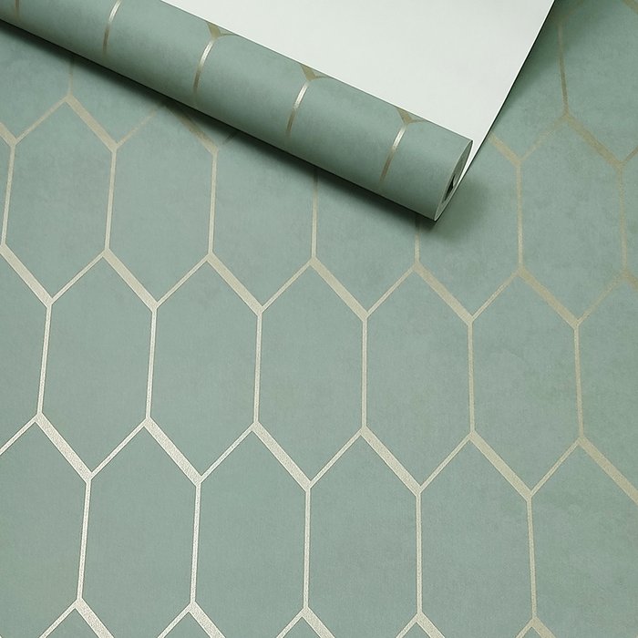 Papel de Parede Geométrico Grade Cinza Azulado+ Cola para Aplicação