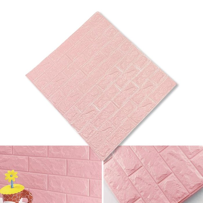 Papel de Parede Grosso Realista 3D Adesivo Espuma Desenho Tijolo Rosa Quarto Menina A Prova D'água Rosa