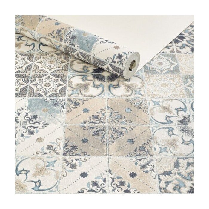 Papel de Parede Importado Vinílico Textura Azulejo Português