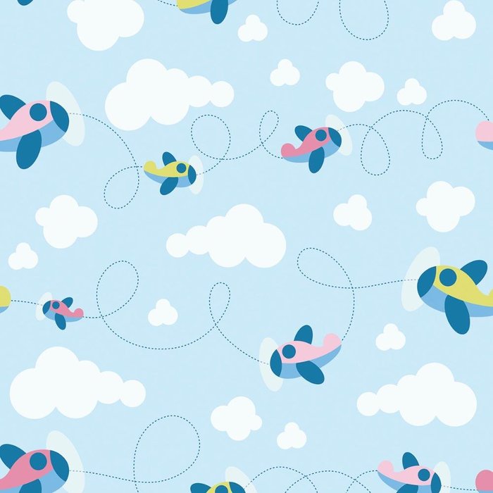 Papel de Parede Infantil Avião e Nuvens 10mx57cm Beb60g