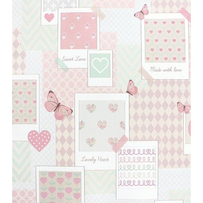 Papel de Parede Infantil Vinílico Renascer Bobinex - Patch Love (Tons de Rosa/ Verde) - COLA GRÁTIS
