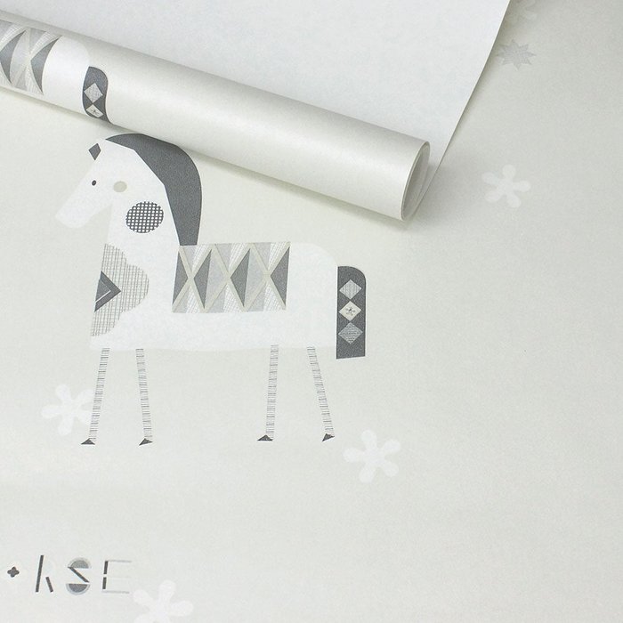 Papel de Parede Infantil Cavalinho Cinza- Com Cola Para Aplicação