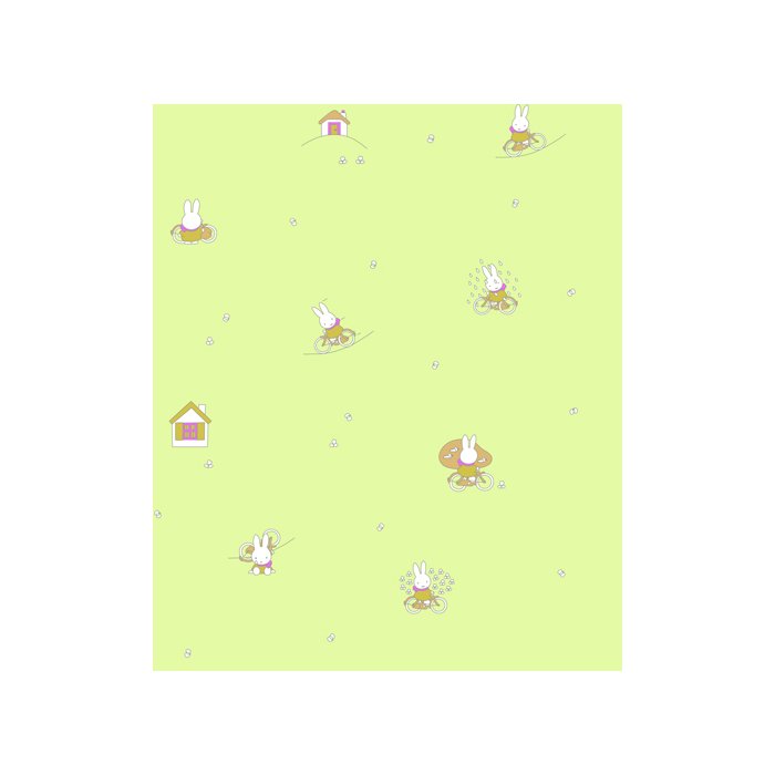 Papel de Parede Infantil colorido com Detalhes de Coelhinhos com fundo Verde para Escola Infantil