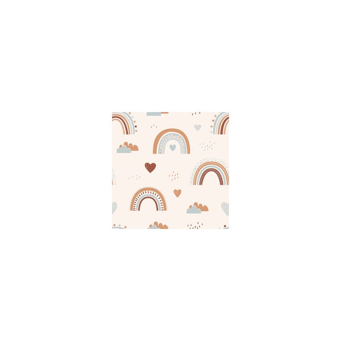 Papel de Parede infantil com arco-íris e corações desenhados à mão. crianças escandinavas criativas