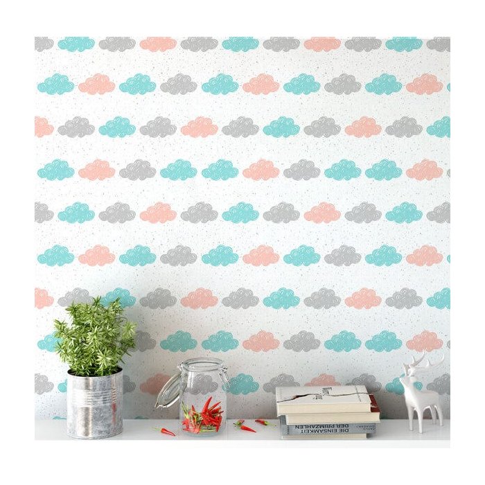 Papel De Parede Infantil Com Nuvens Coloridas Colorido