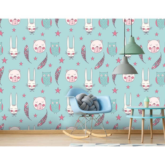 Papel de Parede Infantil - Coruja, Coelho e Urso 2