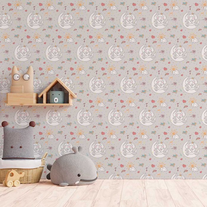 Papel de Parede Infantil - Elefante na Lua Arte Destaque