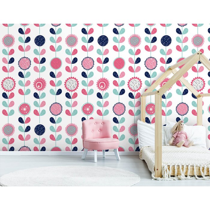 Papel de Parede Infantil Flores Abstratas Arte Destaque 1,50 Metros
