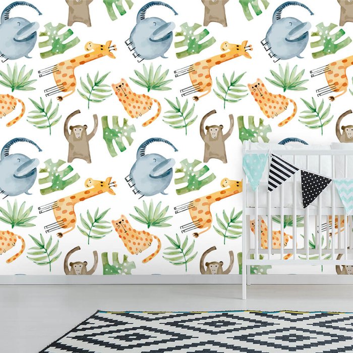 Papel de Parede Infantil - Safari Aquarela Arte Destaque 1,50 Metros