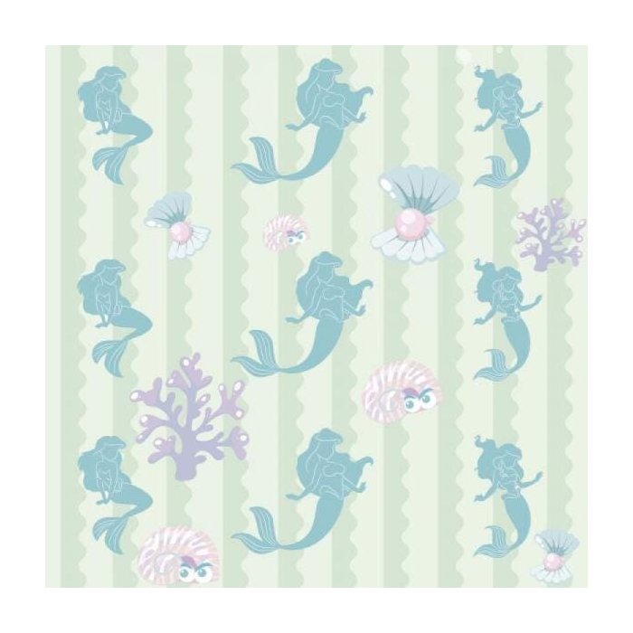 Papel de Parede Infantil Sereia Fundo do Mar Azul