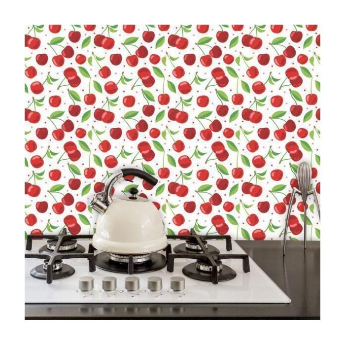 O Papel De Parede da Inove é uma maneira rápida e prática de trazer mais beleza para a sua casa. Além disso, é uma oportunidade de materializar a sua personalidade, tornando o ambiente muito mais confortável pra você. O modelo estampado com cerejas deixa a cozinha moderna e cheia de estilo e graça.