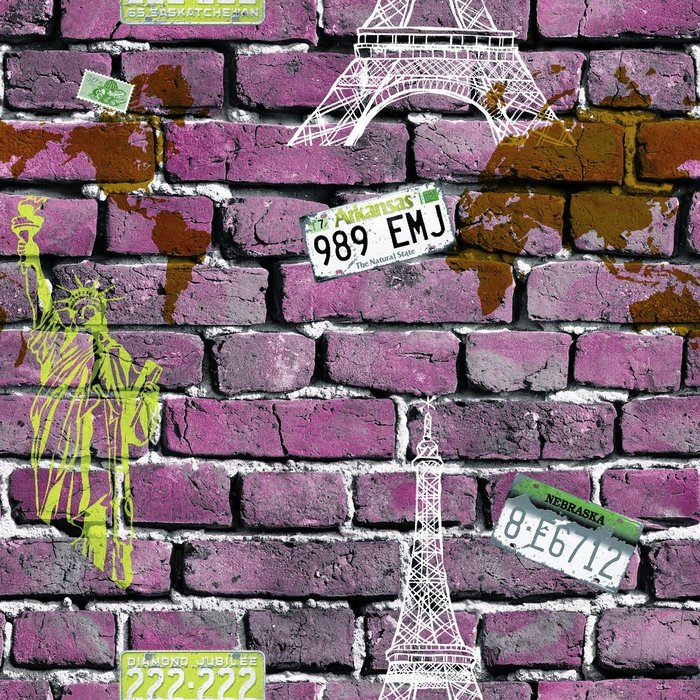 Papel de Parede Kantai Neonature 5 - Tijolinho com Desenho Rosado Rosado