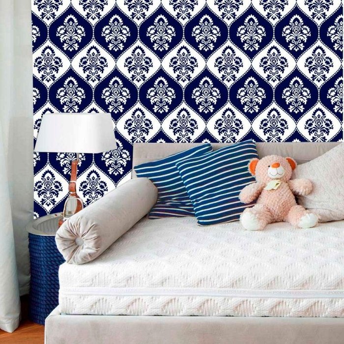 Papel de Parede Lavável Clássico Arabesco ca0074 Invertido Azul e Branco