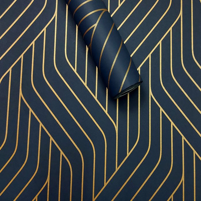 Papel de Parede Linhas Geométrico Azul Escuro Fio Dourado Metálico 9,50 M - Coleção Gold - 210662