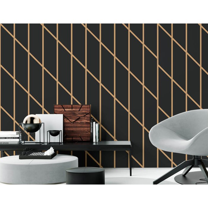 Papel de Parede Linhas Preto e Dourado 3 Arte Destaque 2 Metros Preto e Dourado